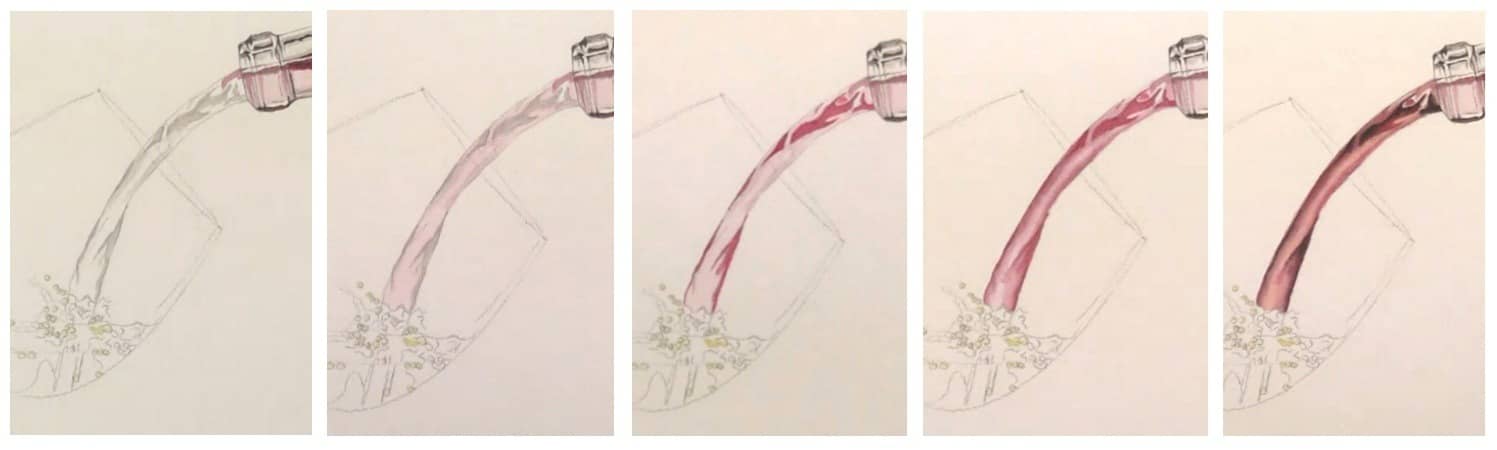 Wednesday, Sept. 10 - Develop color and values in the "pouring" area. Then, you will see two methods for creating the pale gray of the glass - wet in wet, and wet on dry. Lesson length: about 90 minutes